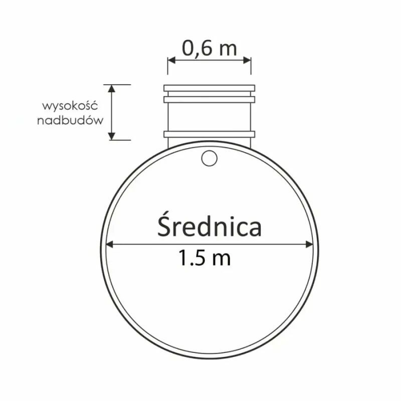 wysokość nadbudowy włazu rewizyjnego: 0,6m (liczona od dna rury dopływowej).